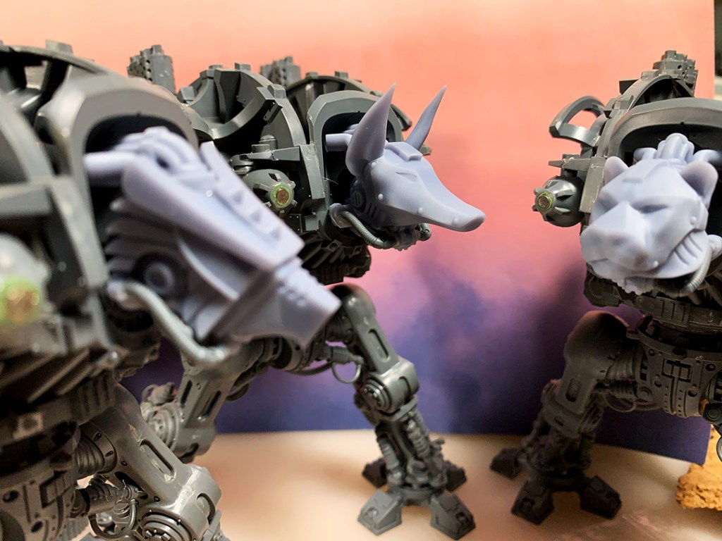 Finally got the three larger heads secured to the knights. First time using third party resin parts that need to fit into GW plastic. Not easy but not overwhelmingly difficult. I am grateful for Gorilla Superglue though. I think these three will be my main battle knights for this army going forward. I like the personality they seem to be taking on with these heads, or maybe it’s the superglue fumes talking to me.